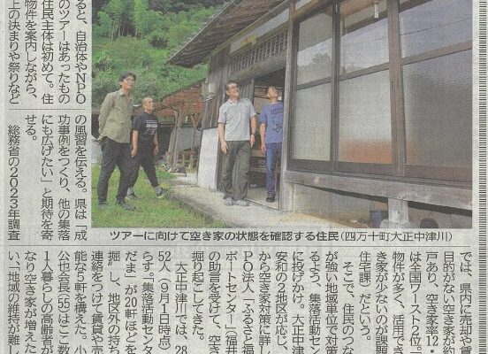 ふるさと福井サポートセンターがサポートしている高知県の四万十町大正中津川と須崎市安和にて、空き家ツアーが開催されます。