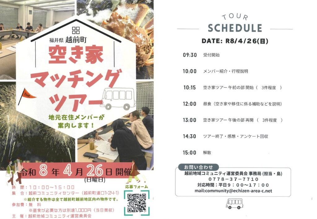 2026年4月26日に福井県の越前町越前地区にて「空き家マッチングツアー」が開催されます。